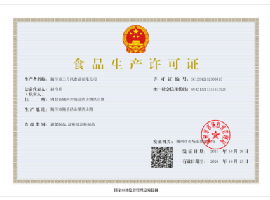 隨州市二月風食品有限公司-食品生產許可證